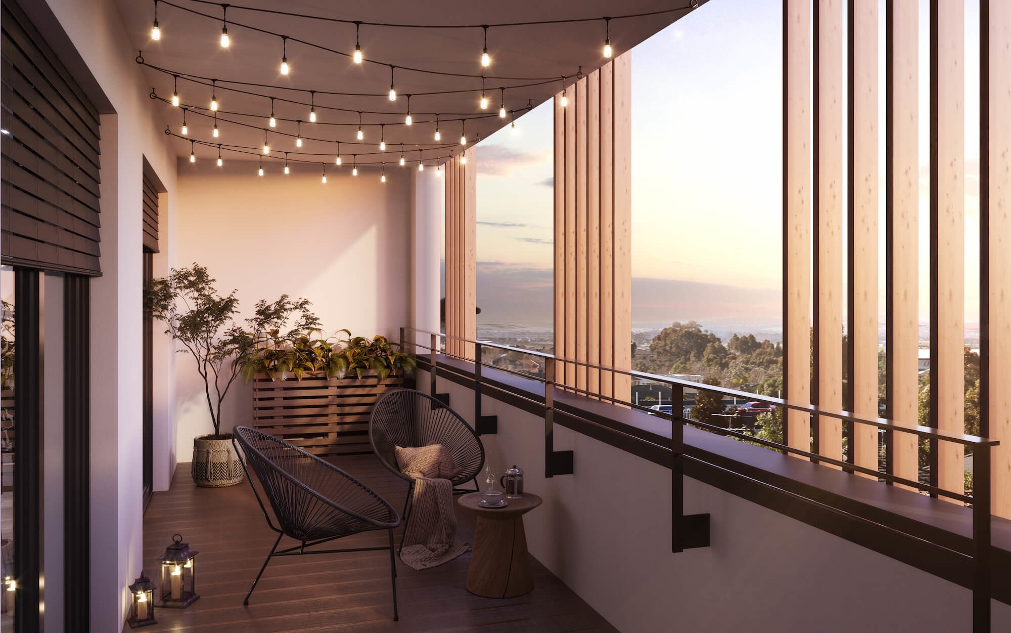Die Wände, Fenster und Türen sind nach den neusten Standards ausgewählt und überzeugen durch ihre lärmisolierenden Eigenschaften. Nicht nur optisch vorteilhaft: Die Holzlamellen sorgen für mehr Privatsphäre im Bereich des Balkons, genau so wie die vollständig durchgezogenen Seitenwände.